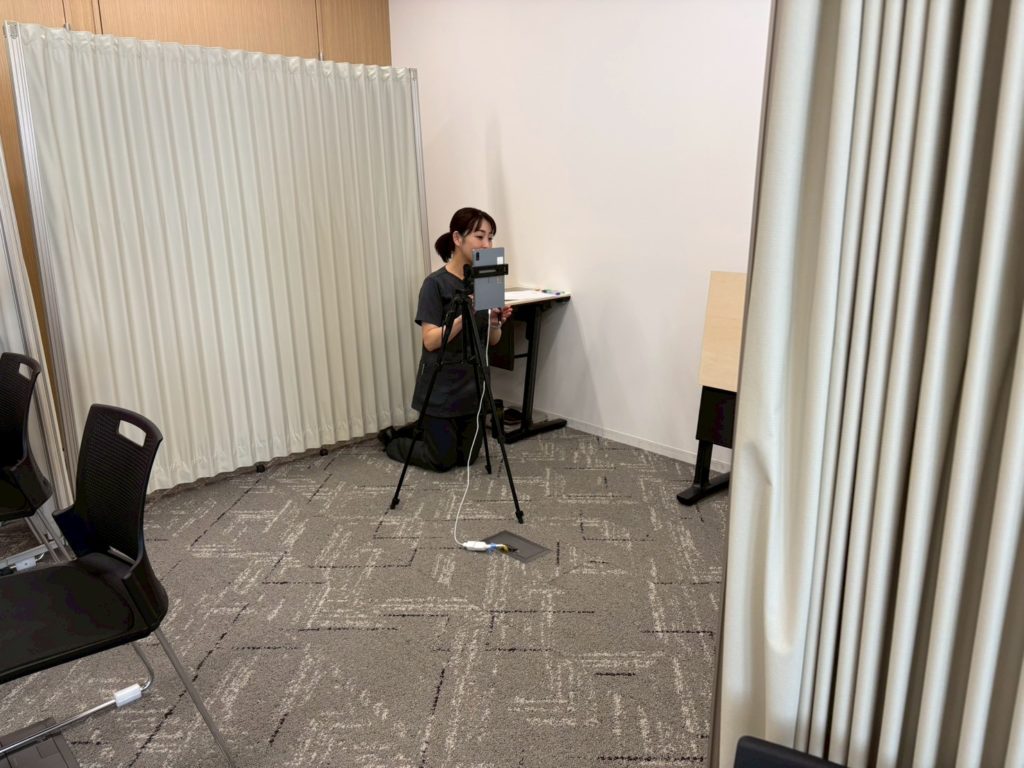 分析ブースではまず、測定器で姿勢測定を実施。